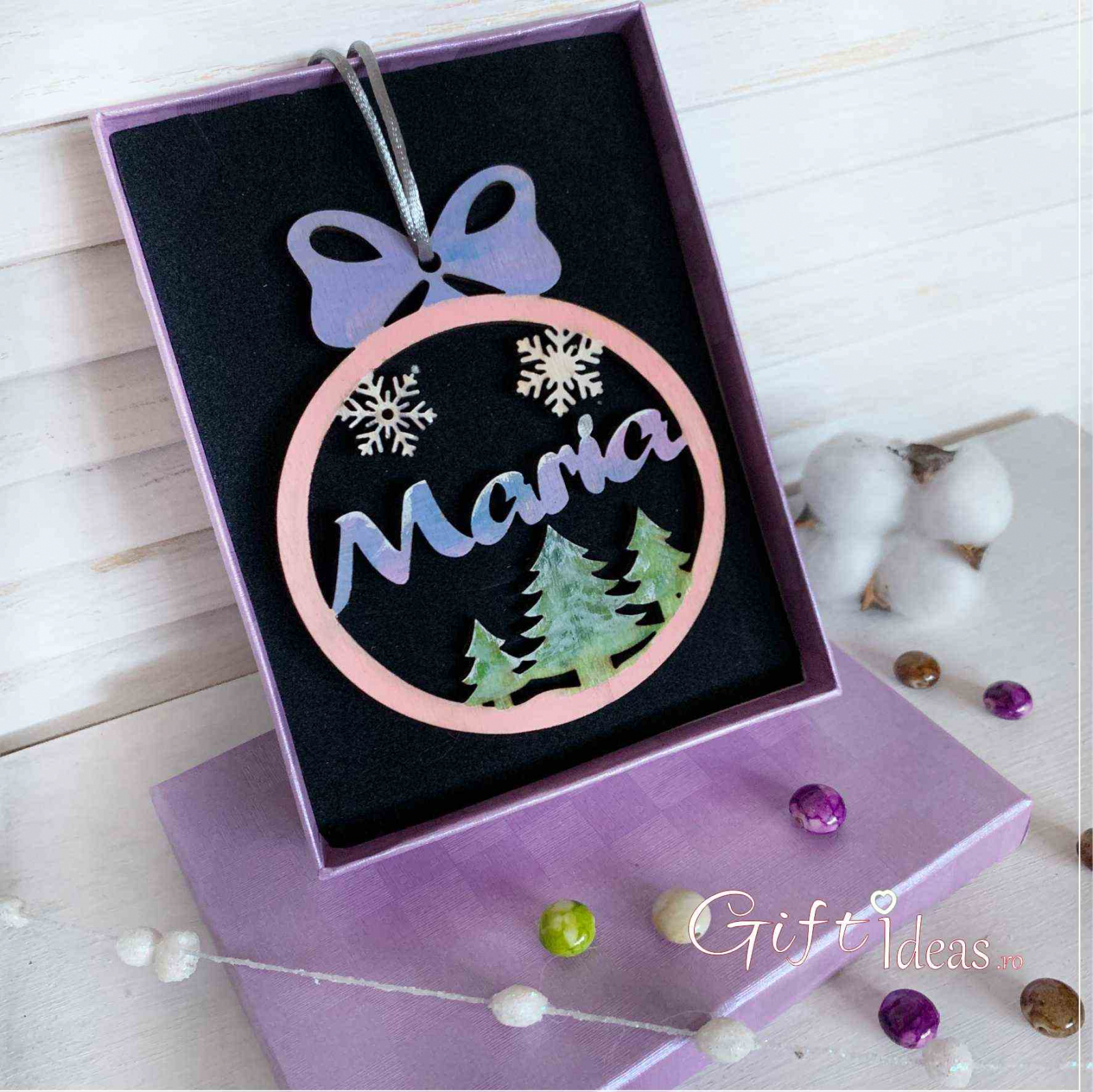 Decoratiune pentru brad Craciun - Glob personalizat cu nume.