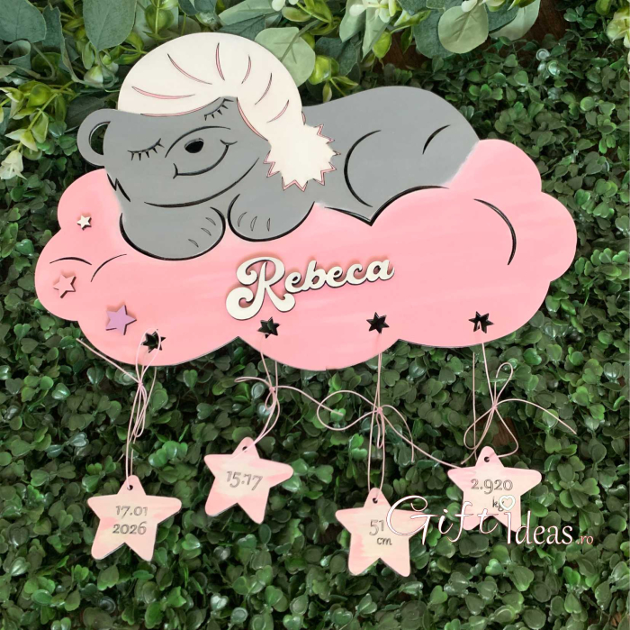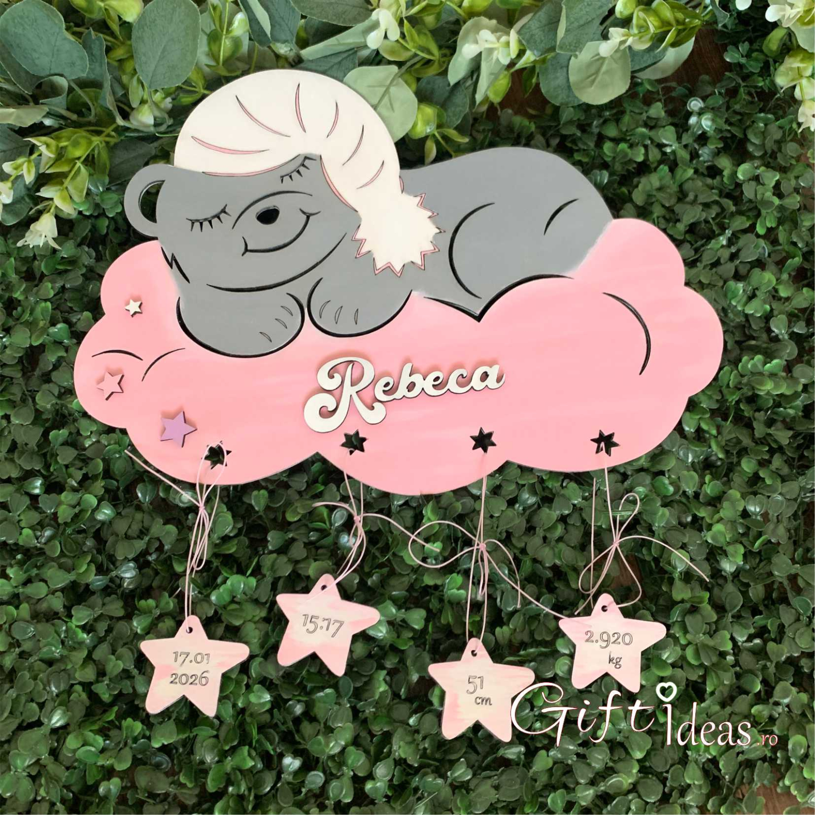 Cauți cel mai drăguț cadou pentru un nou-născut? Decorațiunea Ursuletul Somnoros aduce un zâmbet pe chipul oricărui părinte. Realizată manual din lemn natural și pictată în culori calde, această plăcuță personalizată cu numele bebelușului este detaliul perfect pentru a completa decorul camerei sau pentru a fi oferită cadou la prima vizită.