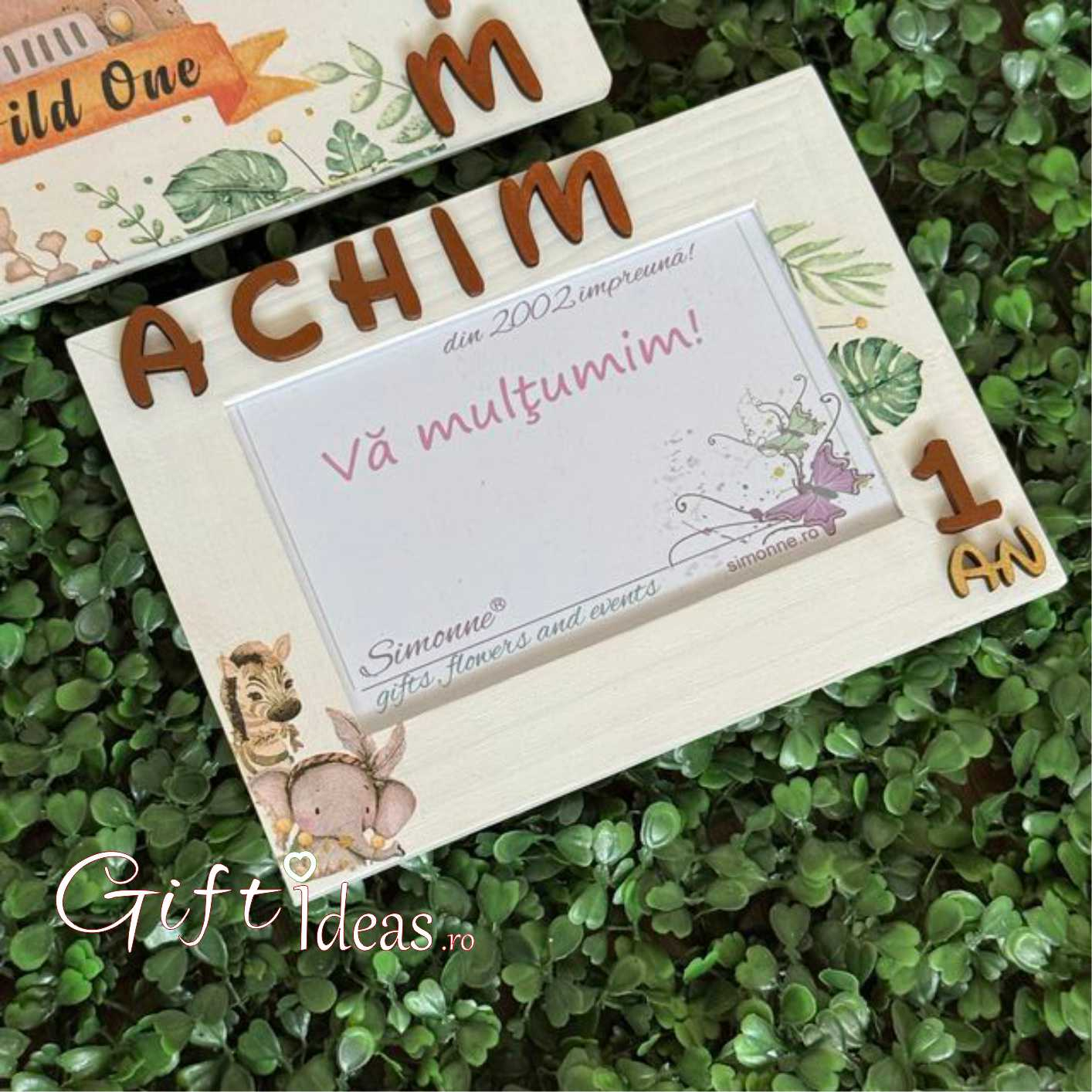 Fie că decorați camera copilului sau o oferiți ca un cadou special, această ramă foto în tema Animalute Wild One va adăuga un strop de veselie și aventură în lumea lor mică. Alegeți bucuria și creativitatea cu acest cadou fermecător pentru cei mici.